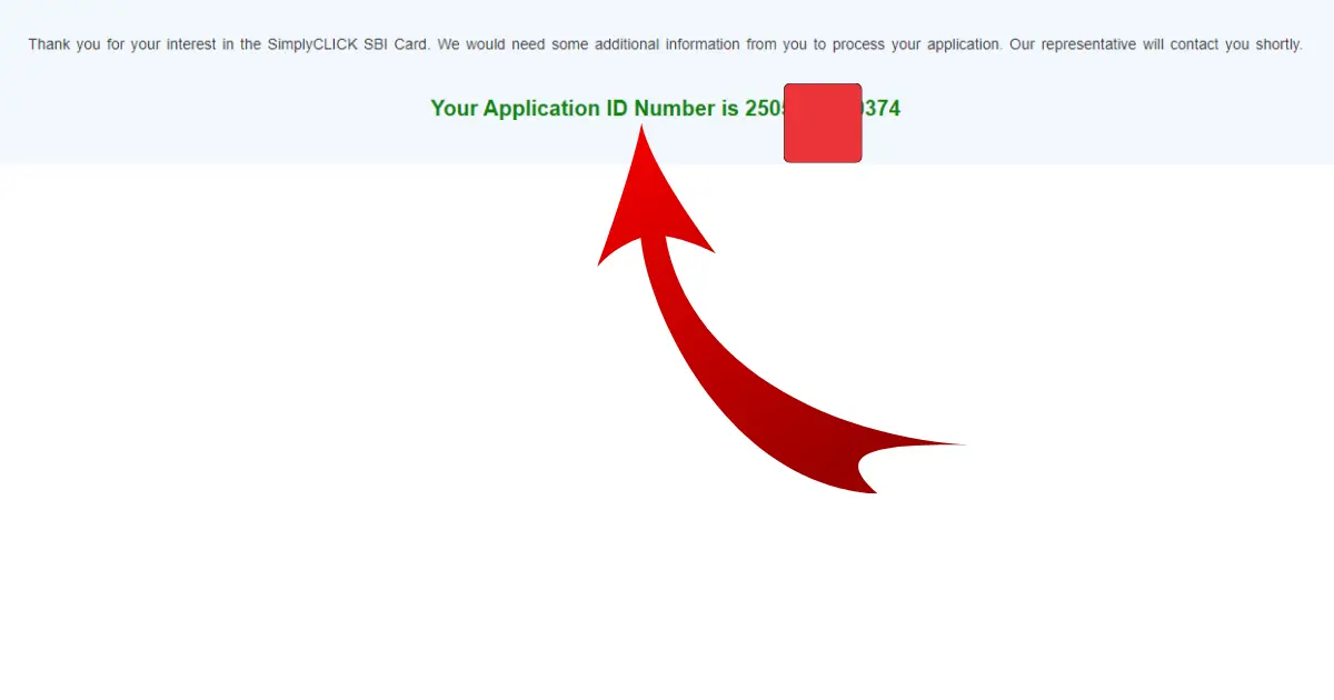 step no .4 एक आईडी आपको दिया जाएगा उस आईडी को आप नोट कर लें या कहीं लिख कर के रख ले क्योंकि जैसे यह एप्लीकेशन नंबर आपका अप्लाई हो जाता है तभी एसबीआई के कर्मचारी तुरंत आपको कॉल करके आपकी डिटेल पहुंचेंगे और कार्ड आपके घर में credit card सेंड कर दिया जाता है, जिस पते पर आप मंगवाना चाहते हैं,मैंने अपनी id नंबर को लाल रंग कर दिया,जो मेरी सेफ्टी रहेगी |