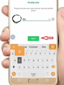 जहाँ पर आपको अपना मोबाइल नंबर इन्टर करना है जिस पर आप व्हात्साप चालू करना चाहते हो ,इन्टर कर के next बटन पर क्लिक करे |